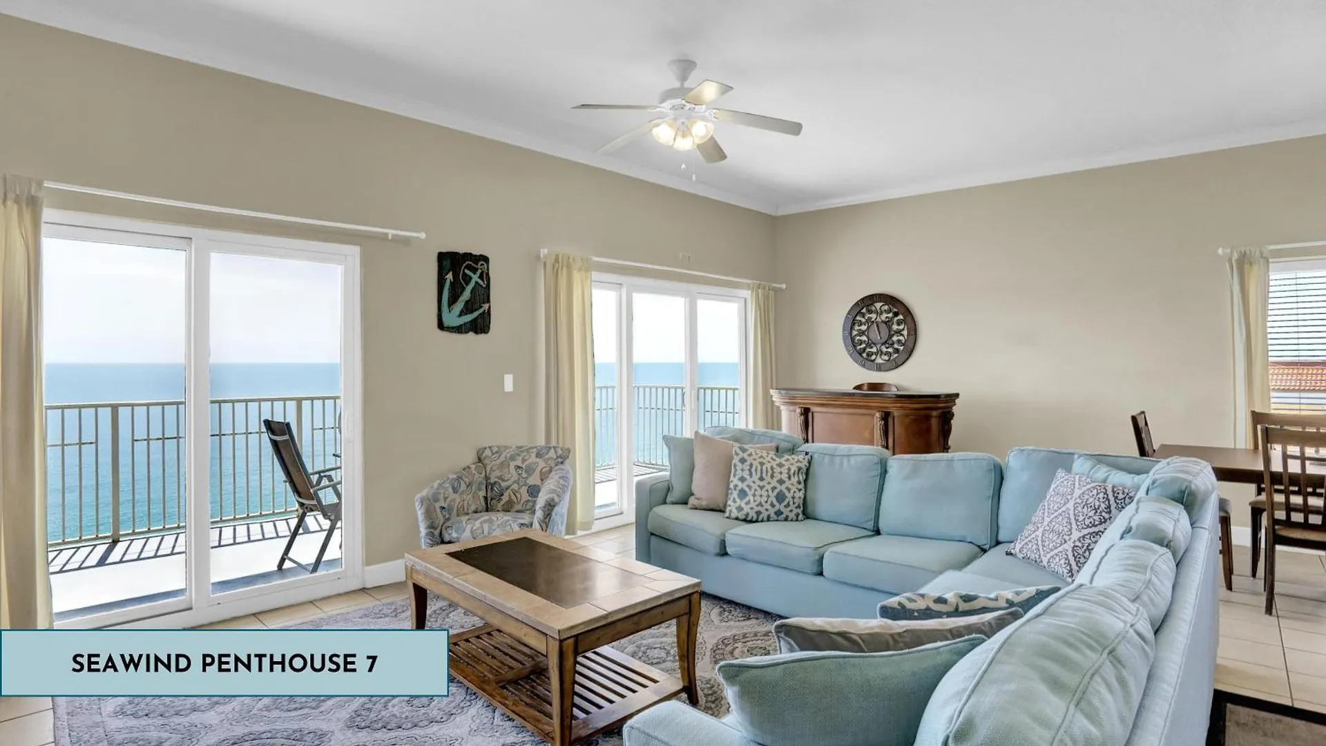 Seawind 7 Penthouse é um apartamento à beira-mar localizado em Gulf Shores, 5 minutos de distância de Live Webcam @ Sea-N-Suds. Esta acomodação à beira-mar inclui cozinha totalmente equipada, equipada com microondas, um frigorífico e aparelhos de cozinha.